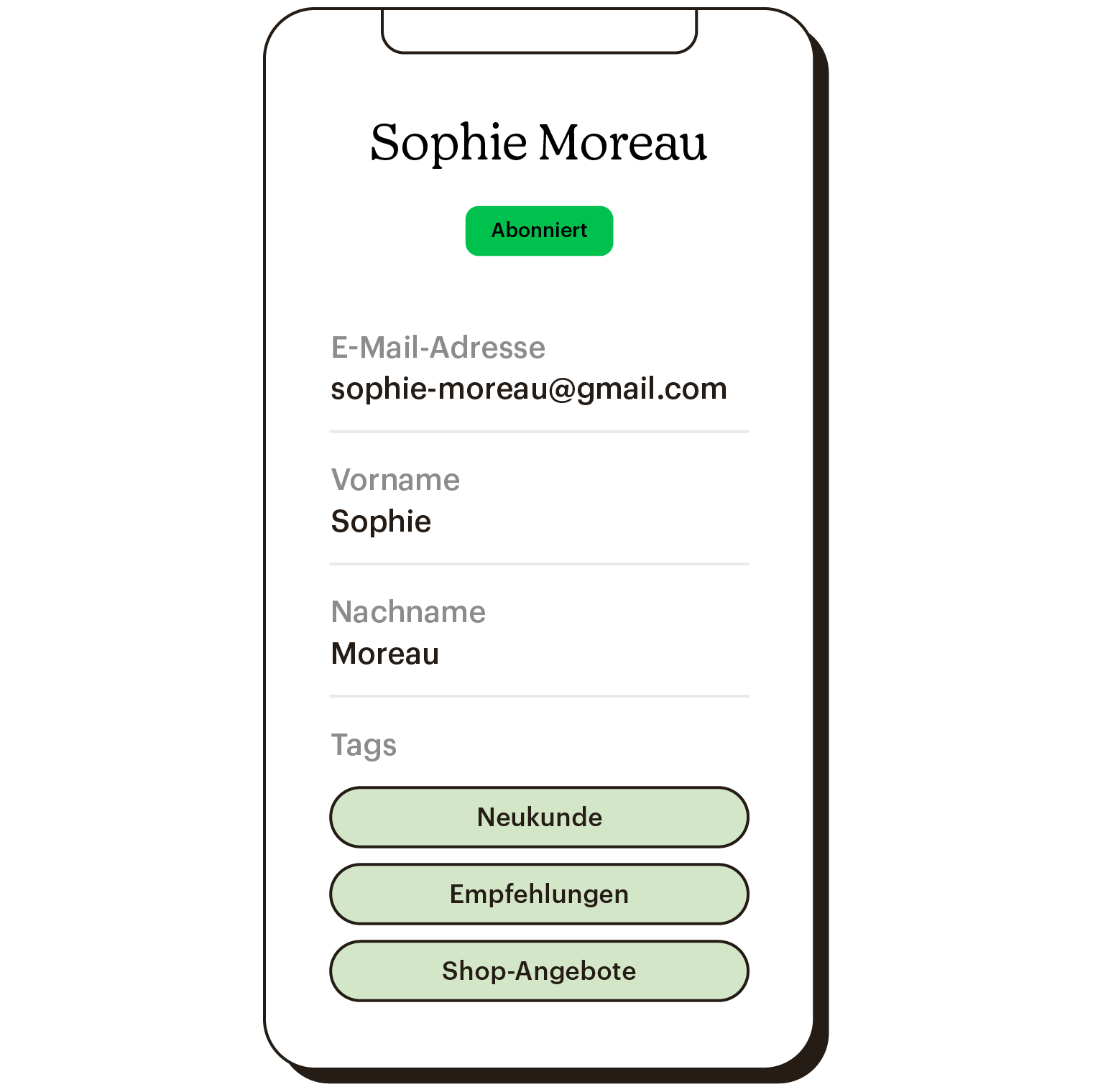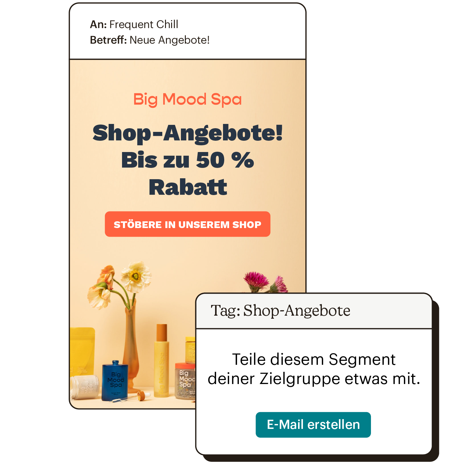 Wenn du deinen Shopify-Store mit Mailchimp verbindest, kannst du ganz einfach benutzerdefinierte Tags hinzufügen, um deine Kontakte zu strukturieren und segmentierte Zielgruppen zu erstellen. Auf diese Weise stellst du sicher, dass deine Kontakte nur Inhalte erhalten, die sie tatsächlich sehen wollen.