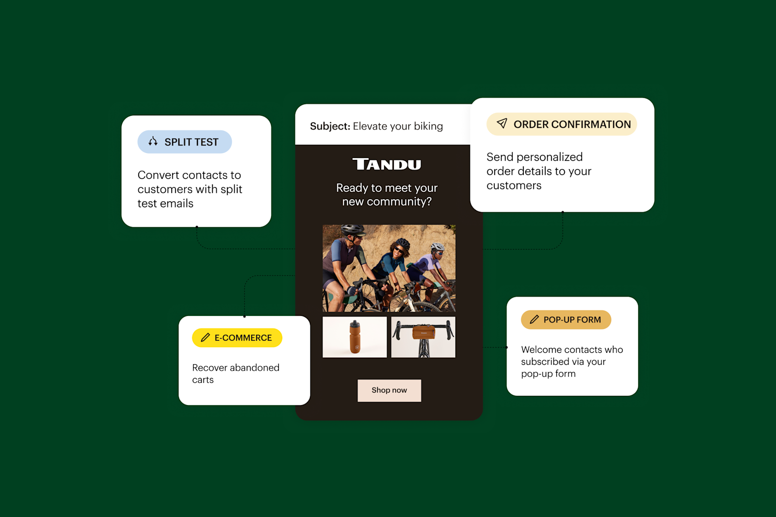 Sprich direkt mit deiner Zielgruppe, wenn du deine Nuvemshop-Daten mit Mailchimp synchronisierst. Der Customer Journey Builder von Mailchimp nutzt die Daten der Kundinnen in Echtzeit, um automatisierte Marketingkampagnen zu erstellen, die individuell auf deine Zielgruppe zugeschnitten sind. Steigere das Engagement der Kundinnen mit personalisierten Empfehlungen oder schließe abgebrochene Verkäufe mithilfe von Warenkorbabbruch-E-Mails ab. Mit über 100 professionell gestalteten E-Mail-Vorlagen ist die Entwicklung von Marketingkampagnen im großen Maßstab ganz einfach.