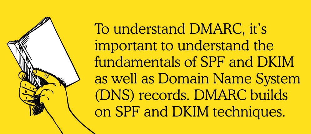 Um DMARC zu verstehen, muss man die Grundlagen zu SPF und DKIM sowie zu den Domain Name System(DNS)-Einträgen kennen. DMARC basiert auf SPF- und DKIM-Verfahren.