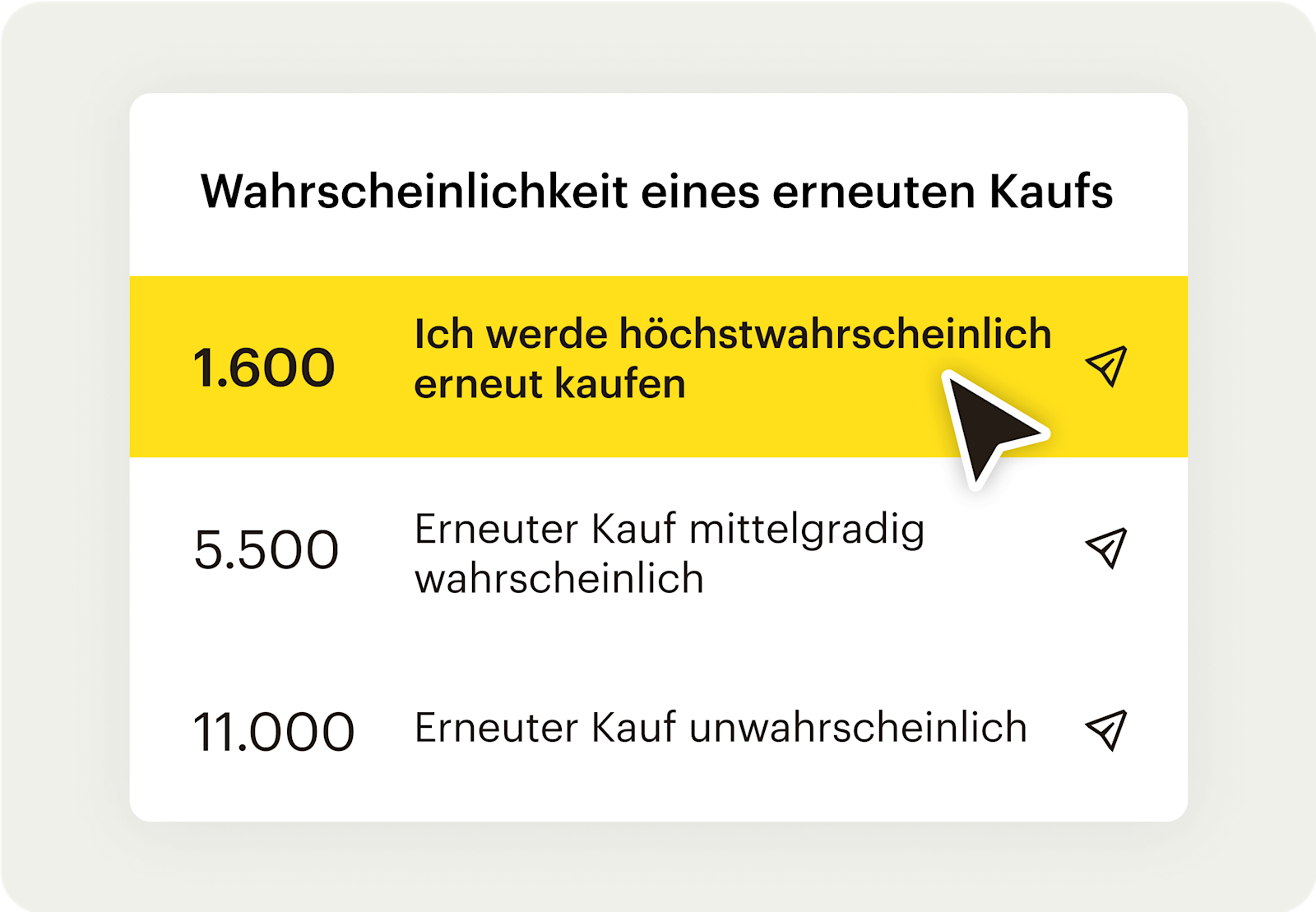 Fördere Folgegeschäfte, indem du Kontakte auf Basis von Demografieprognose und E-Commerce-Verhalten ansprichst.