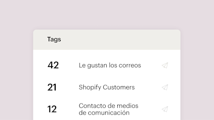 Con todos los datos de contacto en un mismo lugar, es muy sencillo utilizar las herramientas de segmentación de Mailchimp para saber exactamente con quién necesitas hablar. Los segmentos, las etiquetas y los grupos funcionan de un modo ligeramente distinto para ayudarte a crear tu propia estructura organizativa y realizar un seguimiento de todo lo que aprendes sobre los contactos a medida que vas creciendo.