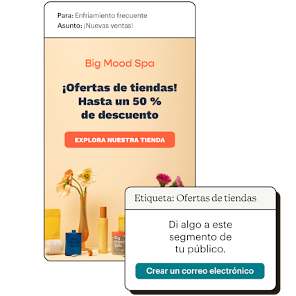 Cuando conectas tu tienda de Shopify a Mailchimp, puedes añadir fácilmente etiquetas personalizadas para organizar tus contactos y crear públicos segmentados. De esta manera, puedes asegurarte de que tus contactos reciben el contenido que realmente quieren ver.