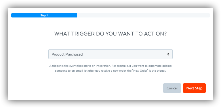 Con Mailchimp, puedes crear tu propia regla cuando un cliente se encuentra con cualquiera de estos eventos activadores en SamCart: