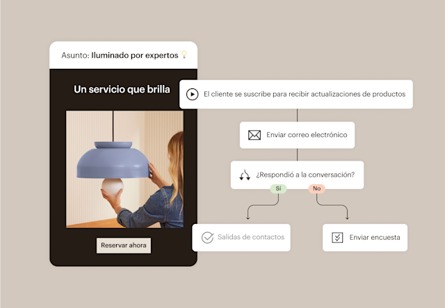 Crea rutas automatizadas que te ayuden a convertir leads de Snapchat en clientes mediante contenido y ofertas personalizadas. Con los correos electrónicos automatizados integrados en el Creador de recorridos del cliente, los clientes de Mailchimp observaron un aumento de hasta el 115 % en las tasas de clics en comparación con los correos electrónicos masivos*.