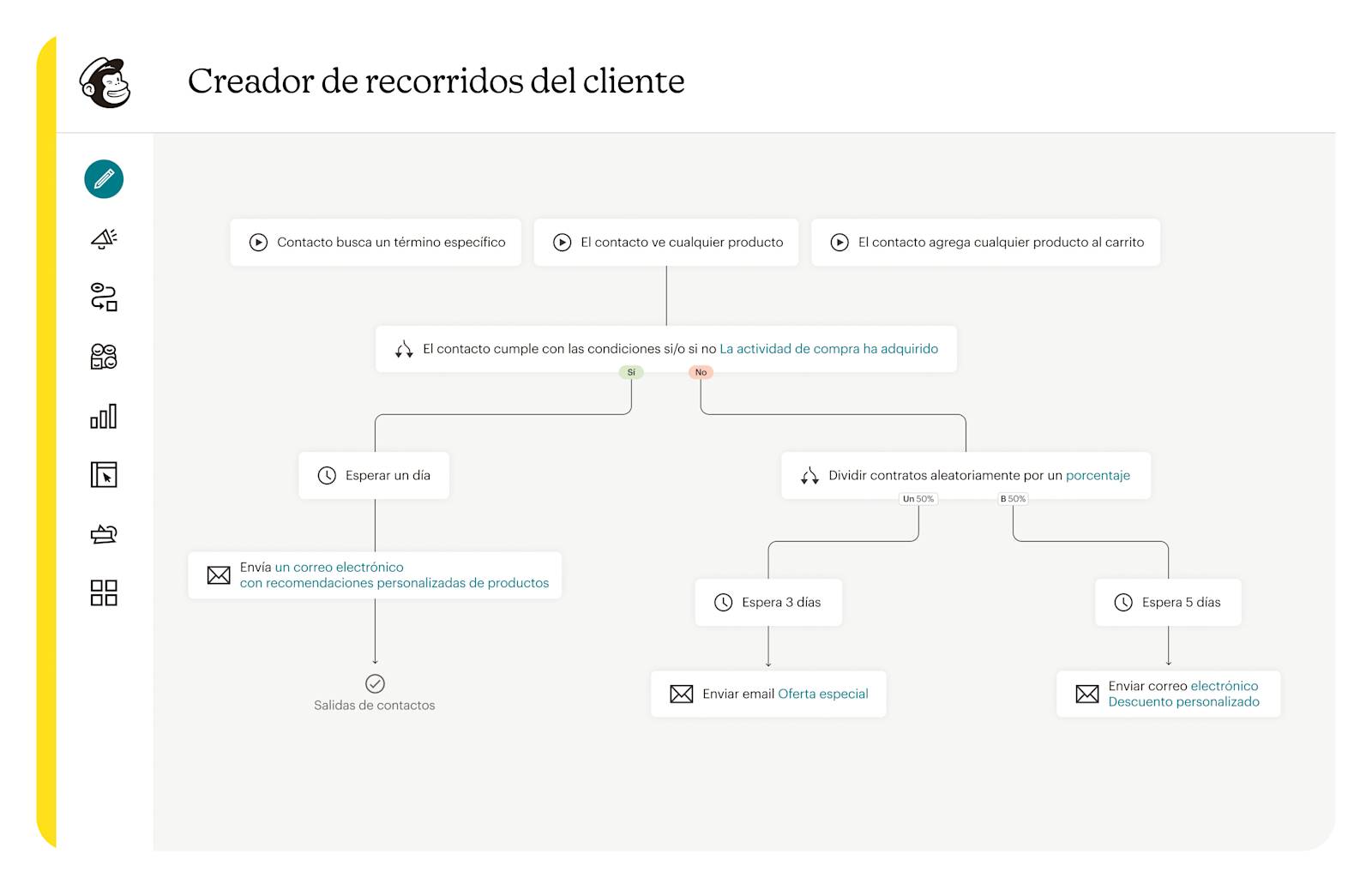 Personaliza los recorridos de los clientes utilizando activadores de compra basados en su comportamiento de navegación único e historial de compras.