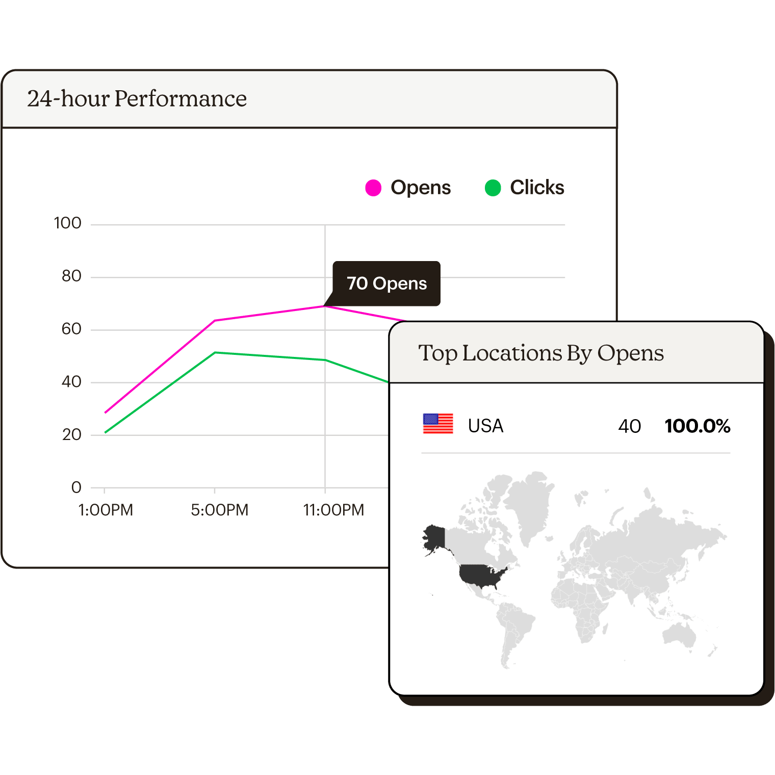 Our reports make it easy to monitor campaign performance, audience growth, clicks, and more, so you can make smart decisions about how to spend your marketing budget.
