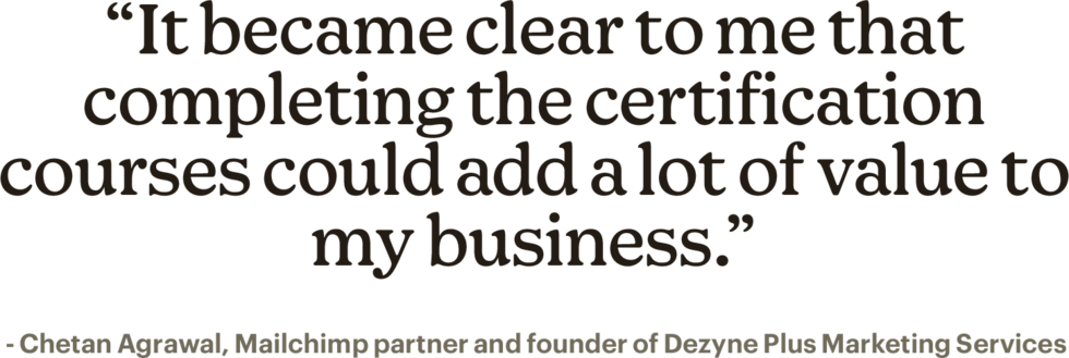 Je dois féliciter l'équipe qui a créé Mailchimp Academy, car cela m'a énormément aidé à développer mes connaissances. Cela peut vraiment vous apporter beaucoup, ainsi qu'à vos clients, tout au long de votre processus d'apprentissage.