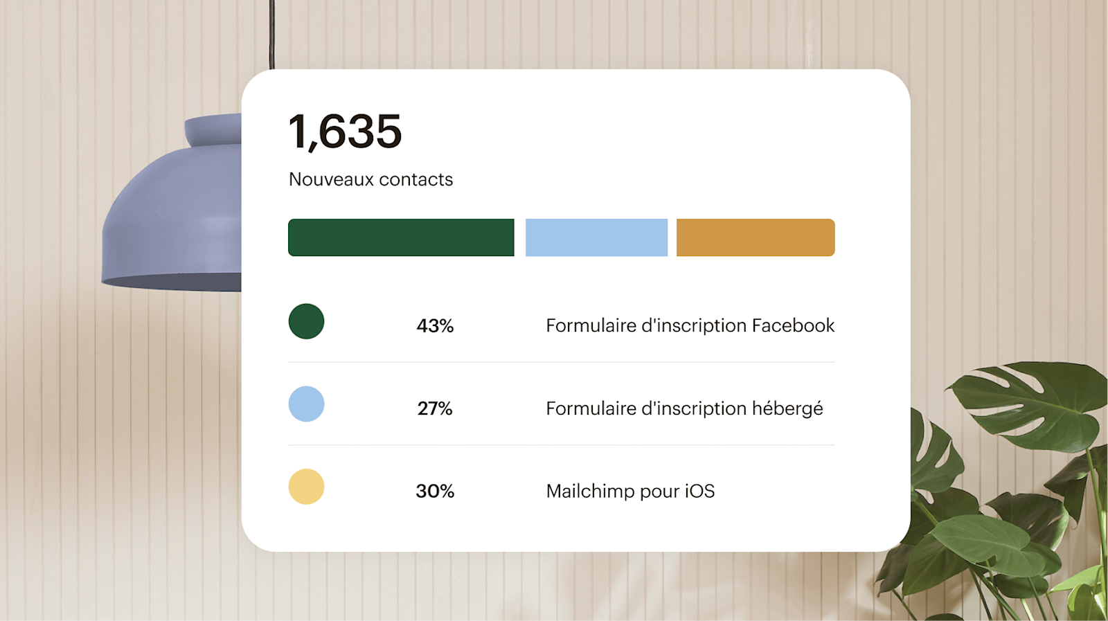 Les données de vos contacts sont l’un des outils les plus importants dont vous disposez en tant que vendeur. Lorsque vous les stockez dans Mailchimp, le tableau de bord de l'audience vous aide à les comprendre de manière globale. Déterminez les tendances de vos données en un coup d’œil, vérifiez si elles changent et comment, et sachez à qui vous parlez, même lorsque votre audience évolue.