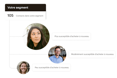Par exemple, la fonctionnalité Likelihood to purchase again (probabilité d'acheter à nouveau) vous permet de déterminer quels contacts sont le plus susceptibles de faire de nouveaux achats auprès de votre marque. Grâce à ces informations, vous pouvez concevoir dans notre créateur d'e-mail des campagnes époustouflantes qui tiendront tout particulièrement compte de ces contacts.