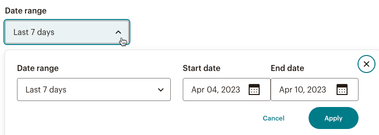 - Use Date range to select a time frame. This will apply to all sections of the page except the Summary.