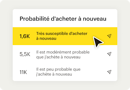 La plate-forme d'e-mail de Mailchimp permet de prédire le comportement des clients. Vous pouvez doubler votre chiffre d'affaires avec les segments prédictifs*, disponibles avec les plans Standard et Premium.*
