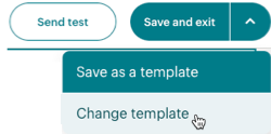 After you choose your email template, you can change it at any time. To change your email’s template, click the Save and exit drop-down, then click Change template.