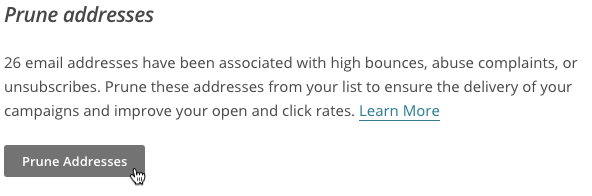 In this article, you'll learn how to remove stale addresses with Mailchimp's pruning tool.