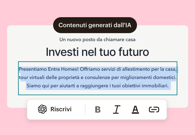 Cerca una generazione di contenuti che comprenda davvero la voce e lo stile del tuo brand. L'AI dovrebbe essere in grado di creare testi e design che corrispondano ai tuoi materiali esistenti, anziché a template generici.
