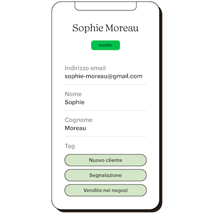 I tag personalizzati possono aiutarti a segmentare i tuoi clienti. Questi tag vengono utilizzati per etichettare i tuoi contatti e prendere nota di tutto ciò che ritieni sia importante. I tag personalizzati sono ideali anche per organizzare i clienti in base ai loro interessi o ad attributi specifici. Con questi tag, è possibile inviare campagne mirate ai clienti dei tuoi segmenti e abilitare le automazioni attivate dai tag.