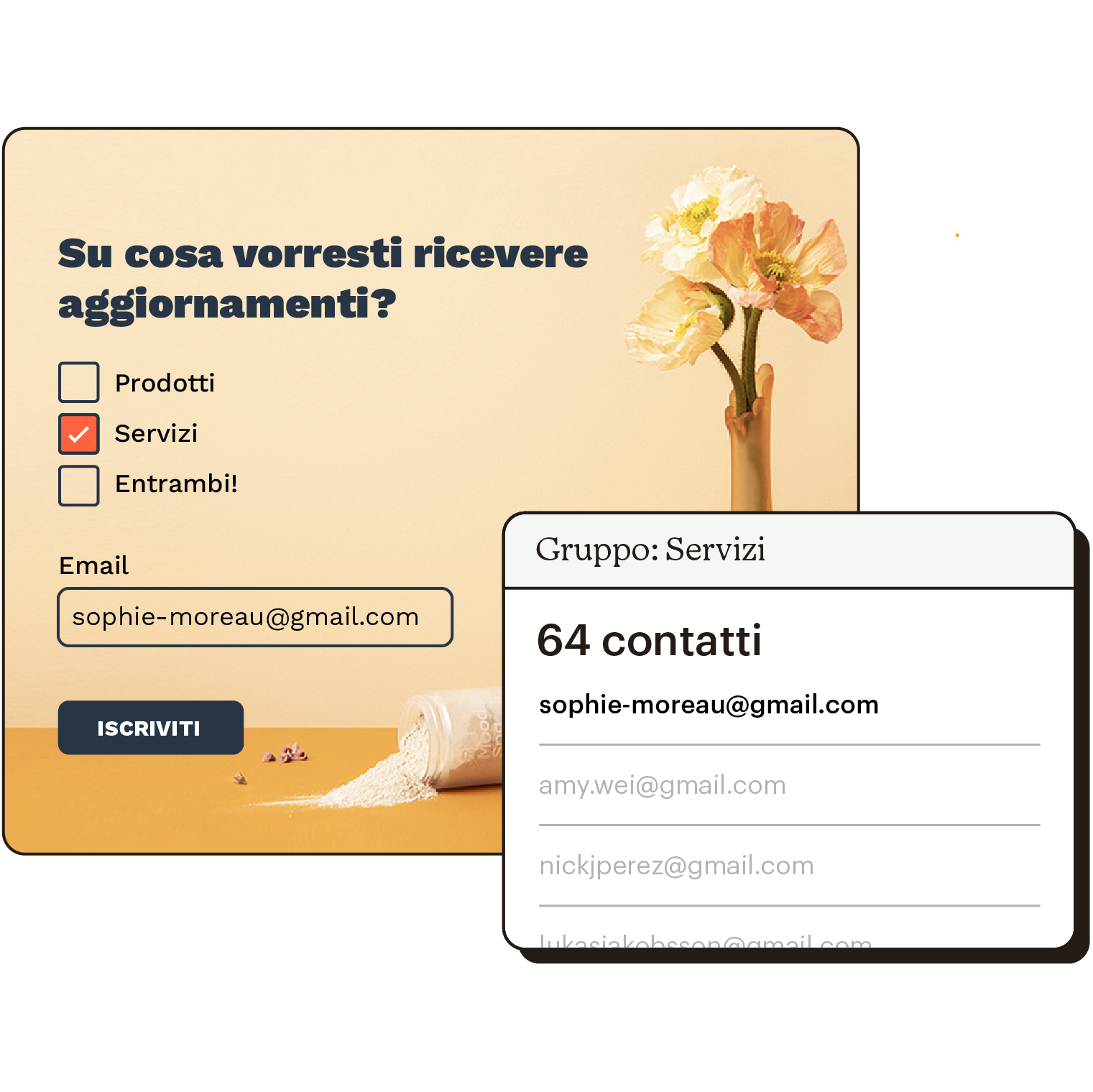 Aggiungendo i campi personalizzati ai moduli di iscrizione Mailchimp, i tuoi contatti potranno farti conoscere le loro preferenze e tu potrai organizzarli in base a gruppi di interessi specifici nel tuo pubblico.