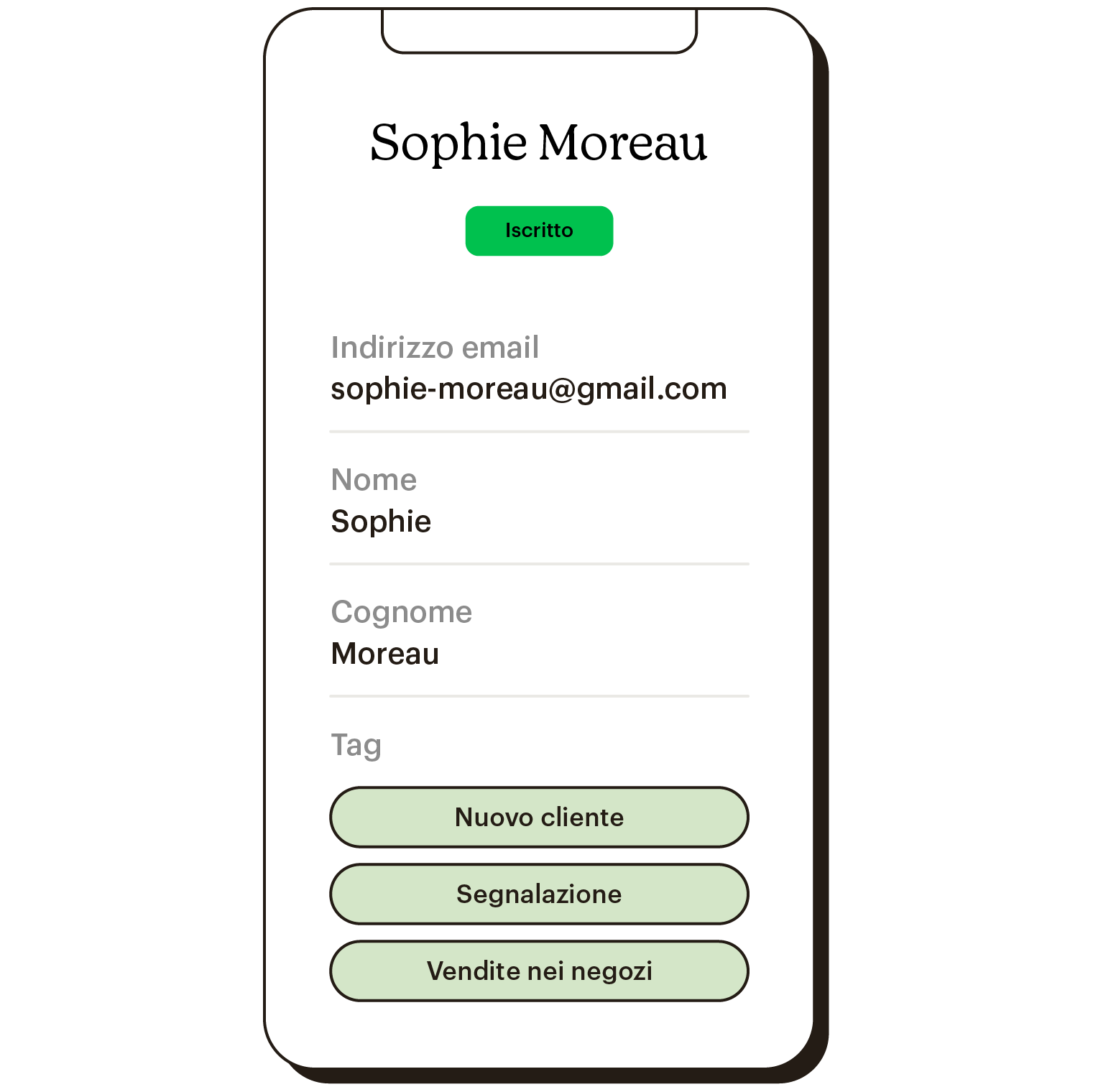 Crea, modifica ed elimina tag da un contatto. Risparmia tempo inviando campagne mirate basate su tag o segmenti in una manciata di clic.