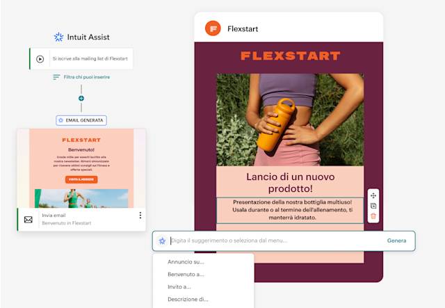 - Sfrutta la potenza di Intuit Assist per creare contenuti orientati alle intenzioni che suscitano interesse presso il tuo pubblico.