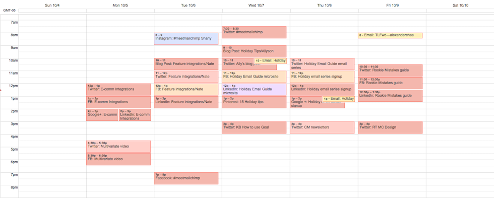 Non si tratta solo di aggiungere follower o aumentare i profitti. Pianificare in anticipo aiuta anche le persone coinvolte, facendo risparmiare tempo ed evitando inutili stress. Puoi comunque essere agile e adattarti quando si presentano le opportunità, ma non ti troverai in una modalità di panico frenetico quando ragioni su cosa pubblicare ogni giorno. Anche se hai solo una persona addetta, tutto il team trae vantaggio quando tutti i membri sono in grado di vedere cosa sta succedendo e aiutare quando serve.