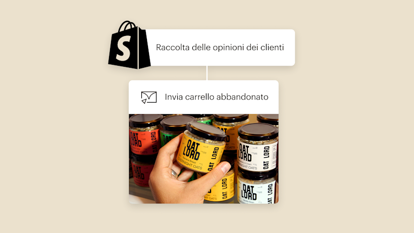 Collega il tuo negozio Shopify a Intuit Mailchimp e sblocca dati più ricchi, che puoi utilizzare per creare campagne iper-personalizzate in grado di convertire i clienti in ogni fase del percorso di acquisto. Approfitta delle nuove condizioni di segmento per l'e-commerce, tra cui prodotto visualizzato, prodotto aggiunto al carrello e ricerca inoltrata.