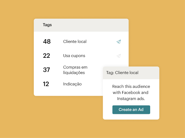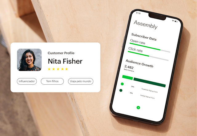 Com o Mailchimp, você pode manter todos os dados e insights de clientes em um só lugar, facilitando o gerenciamento do público. Para usar o Mailchimp como software de CRM para marketing, aproveite as ferramentas de gestão de clientes que oferecemos.