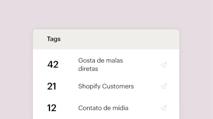 Com todos os seus contatos em um só lugar, é fácil usar as ferramentas de segmentação do Mailchimp para encontrar exatamente com quem você precisa conversar. Segmentos, etiquetas e grupos funcionam de maneiras ligeiramente diferentes, para lhe ajudar a criar sua própria estrutura organizacional e acompanhar tudo o que você sabe sobre seus contatos enquanto cresce.