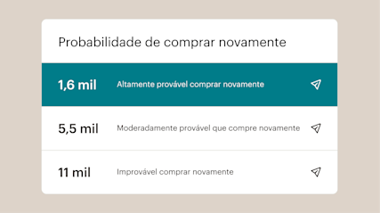 O retargeting de e-mail é uma ferramenta de marketing avançada que pode aumentar as vendas e o envolvimento de contatos atuais e novos. Ao enviar e-mails de remarketing, você pode atrair a atenção dos contatos inscritos e fornecer recomendações personalizadas de produtos que chamem a atenção deles. E o melhor de tudo é que a ferramenta de e-mail de retargeting de produtos do Mailchimp funciona ininterruptamente desde que permaneça ativada, o que permite a você se concentrar em outras campanhas e projetos importantes.