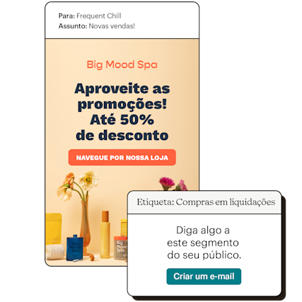 Ao conectar sua loja do Shopify ao Mailchimp, é fácil adicionar etiquetas personalizadas para organizar os contatos e criar públicos segmentados. Dessa forma, você garante que os contatos recebam o conteúdo que desejam ver.