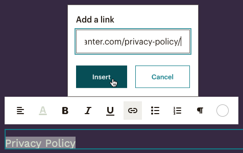 Privacy Policy e selecione com o cursor.privacy-policy.Bom trabalho. Agora, os visitantes da página de destino podem acessar seus avisos legais.