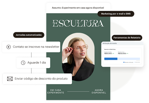 - ROI 30 vezes maior : com base em toda a receita de comércio eletrônico atribuível às campanhas do Mailchimp de usuários de planos pagos, de agosto de 2024 a agosto de 2025.Para calcular o ROI é preciso ter uma loja de e-commerce vinculada a uma conta do Mailchimp.Os resultados variam.