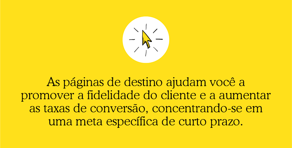 No final das contas, trata-se de transformar visitantes em compradores. É por isso que é tão importante que suas landing pages sejam bem-sucedidas. Traga-os para o seu negócio, faça com que se sintam bem-vindos e dê a eles o que querem, com o mínimo ou nenhuma distração. O Mailchimp pode ajudar a transformar landing pages em mecanismos geradores de leads com métricas inteligentes, design inteligente e muito mais. Entre em contato hoje para saber o que podemos fazer por você.