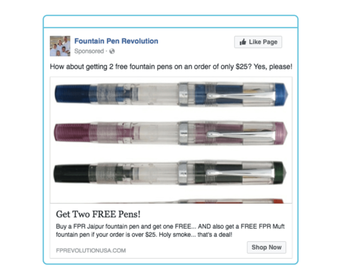 As a small, family-owned business based out of Texas, Fountain Pen Revolution relies on social media to spread the word about their products. “It’s not like you’re necessarily going to find us through a Google search,” Kevin says. But creating ads to reach their 15,000 Facebook followers helps them drive conversions.