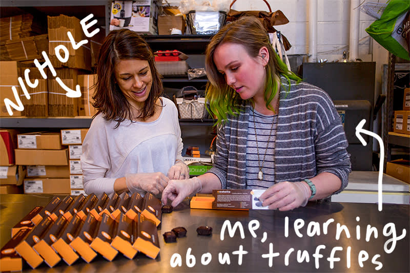 I was excited to interview Nichole Dandrea and her husband, Ricky, co-founders of nicobella organics, not just because they were the first food company we’d be talking to, but because they work in a literal chocolate factory. I couldn’t stop myself from imagining a colorful, Oompa Loompa-filled landscape with chocolate rivers and ponds.